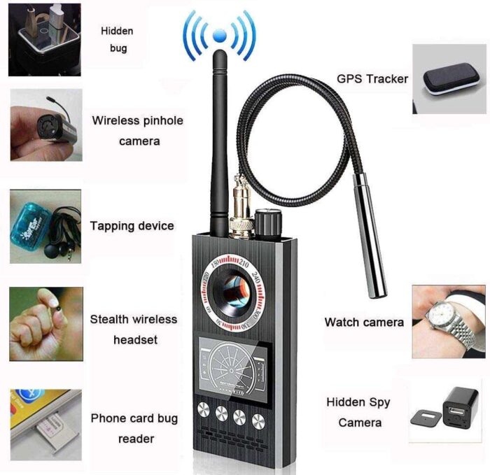 Detects hidden cameras, RF signals, and surveillance devices | Detection Range: Up to several meters |