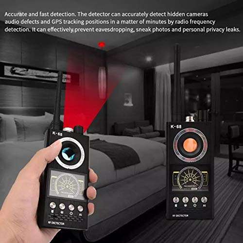 - With its cutting-edge technology, the K68 utilizes radio frequency (RF) detection to pinpoint hidden cameras and other monitoring devices within a range of up to several meters. Whether you’re concerned about unauthorized surveillance in your home, office, hotel room, or any other space, this device empowers you to uncover hidden threats quickly and efficiently.