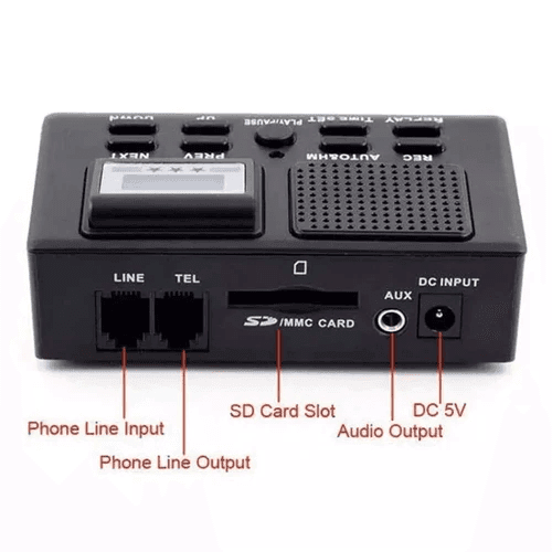 Introducing our Landline Telephone Recorder Box, a sophisticated device designed to seamlessly record phone conversations with automatic precision. This sleek black recorder boasts a multitude of features, ensuring a comprehensive and user-friendly experience.